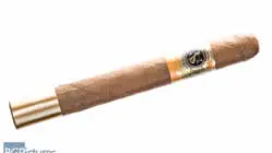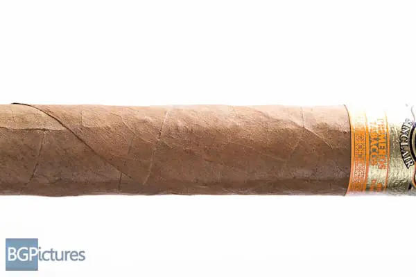 This 7×50 stick features a dry firmly packed tan wrapper with minimal veins, tight seams, a large sloppy triple cap and sweet pepper and floral aromas. First light reveals a snug draw with good medium bodied smoke output showing flavors of a smooth straight tobacco on the draw and finish. The first third burns perfectly, keeping the snug draw but putting out plumes of thick smoke. Flavors remain plain with just a slightly sweet tobacco on the draw followed by a mildly tingly pepper though the lengthening finish. Hitting the 1/2 way point at 50 minutes, construction is flawless, flavors remain the same and burn time is obviously impressive. Ending at 1:40 the last third added a bright nut flavor like cashews to the mix on the draw, dropping the pepper from the finish just leaving the big tobacco taste. Strength came up to medium-full giving quite a rush just at the last couple inches. Thank you very much to David Golden for sending this one in to review!
