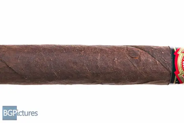 This 9×52 perfecto shaped stick features a dark chocolate very firmly packed wrapper with minimal veins, tight invisible seams, triple cap, oily toothy feel and a sweet cedar and earth aroma. First light reveals a very snug draw with hardly any smoke output or flavor, it feels full of knots. Luckily a few minutes in all the draw problems go away, giving better smoke generation but with a very mild body. Flavors are a sweet light wood and damp earth, but it just tastes like an after taste. The 1/2 way point comes at 55 minutes proving to be quite boring with no changes but great burn. Finishing at 1:40 minutes the last third brought in a touch of cream to the draw and the body up to medium.