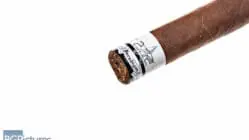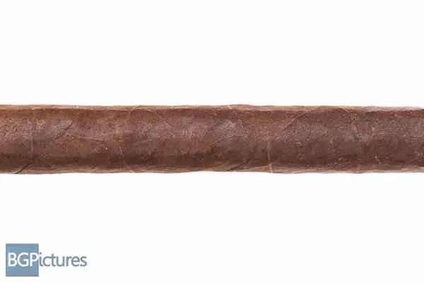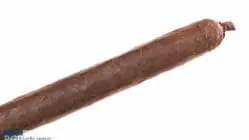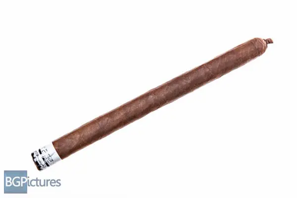 Sigh. It’s been one of those months. I recorded this vid with the mic off, so here’s written review at least 🙁 This 7×38 stick features a dark chocolate, firmly packed wrapper with a satin, gritty toothy feel, minimal veins, tight invisible seams, a large pigtailed double cap and pungent smoky cocoa aroma much like a fire cured. First light reveals a very snug draw putting off minimal smoke with soft slightly sweet earth and pepper flavors and a short clean finish. The first third opens the draw slowly but doesn’t change at all with the flavor profile. The ash falls very short in not even 1″ chunks, so watch out. The 1/2 way point comes 45 minutes in, still with no change whatsoever. Ending at 1:15 the last third had a bump in strength to medium-full then down a tick to medium, while flavors only changed slightly coming up to a medium body and adding a cocoa to the earthy core. Thank you very much to John Pearson for sending this sample for review!