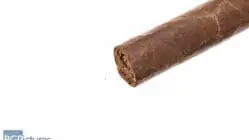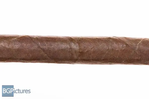 This 7×38 lancero features a dark chocolate, smooth, firmly packed slightly oily wrapper with minimal veins, tight invisible seams, a triple coiled cap and rich cocoa and tobacco aroma. First light reveals a perfect draw with copious amounts of thick creamy, chewy full bodied smoke with smooth flavors of a zingy meatiness, soft earth, slight pepper and sweetness with a long finish. The first third brings a big creamy leather in while the rest of the blend continues all the way through the finish with perfect construction. The ash drops in big 2″ chunks and by the 1/2 way point 35 minutes in, the leather is replaced by a dark chocolate and coffee while some heat is added to the oily finish. Ending at the hour mark, the last third drops the cream just leaving the deeper cocoa and coffee flavors while the finish drops the pepper and spice staying long and smooth. That’s what she said.