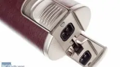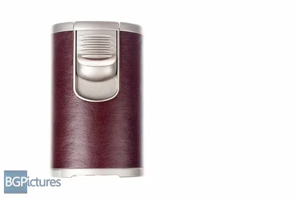 This is a basic but stylish tabletop cigar lighter made for practical use and simplicity.  It only has a single control for the flame height and that’s all you get as far as features.  The protective lid springs open as you press down on the ignition button, providing 4 small torch flames with minimal wind resistance.  It’s wrapped in a very nice leather-like vinyl with faux stitching on the back.  The reservoir is huge but there is no fill window.  It’s very comfortable in the hand and does look the part as a higher-end looking design.