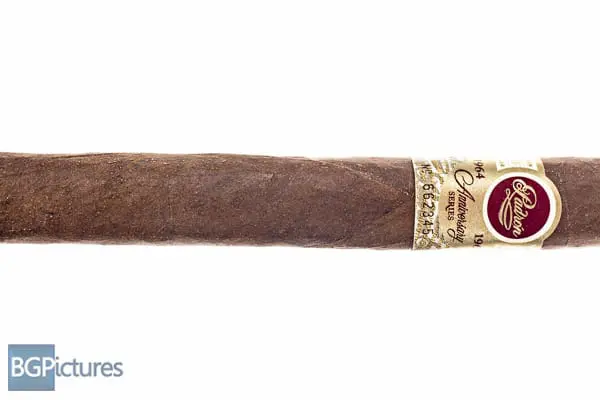 This 6.5×46 stick features a dark chocolate slightly spongy wrapper with pronounced tooth like course sandpaper, minimal veins, tight invisible seams, a single cap and a damp barnyard aroma.  First light reveals a perfect draw with thick rich medium-full bodied smoke with smooth aged tobacco notes of dry cocoa, a slight sweetness and pepper zing that intensifies on the long finish.  The first third burns very well getting smoother, mellowing all the flavors together and coming down to a medium body.  The 1/2 way point comes at 35 minutes with flavors taking on a new direction with a natural sweet cream, subtle coffee and coco and just a touch of pepper on the tail end of the finish.  Burn slows with perfect construction.  Ending at 1:05 the last third goes to a big creamy coffee and earth on the draw with a earthy nut finish.