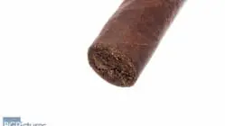 This 7×70 (yes, 7×70) stick features a dark chocolate wrapper with a red hue, mottling, medium veins, tight invisible seams, double cap, a fairly soft even pack, oily soft feel and damp musty tobacco aroma. First light reveals a completely open draw even with a punch, a medium-full body producing flavors of just a smooth straight tobacco on the draw and finish. The first third starts very slow with flavors going to a medium body and adding a caramel and smoked meat in addition to the straight tobacco core. The finish is smooth and mellows out a touch. Just going in to the 2nd third, flavors remain the same but the body goes way don to mild-medium. Hitting the 1/2 way point at 55 minutes, the burn is very bad needing frequent small and one huge touchups however this is not unexpected with a ligero heavy blend. Flavors are unchanged. 1:30 in it required a complete relight with a wonky burn and tunneling. Ending at 2:10 the last bit got progressively warm but burned better than any other section, bringing the body to medium and bringing up a nice caramel sweetness to the draw. Thank you to Duran Cigars for providing this for review!