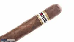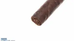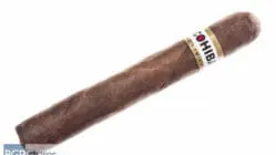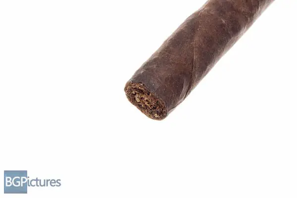 This 6×54 stick features a dark chocolate mottled lumpy wrapper with a very firm pack, small veins, tight very visible seams, an oily satin finish, large double cap and pungent sweet hay aroma. First light reveals a very snug draw with decent mild-medium smoke output of a very creamy textured light tobacco and a long finish of the same. The first third opens the draw slightly going to a medium body adding a touch of sweetness to the creamy light tobacco. The ash drops in a solid chunk, burn is perfect. The 1/2 way point comes at 30 minutes with great construction by the knots releasing pushing body to medium-full. The tobacco shifts to a musty aged tobacco taste. Ending at just over an hour, the last third ramped up the strength to medium-full giving a huge buzz outpacing the body easily. Flavors remained the same and construction was great.