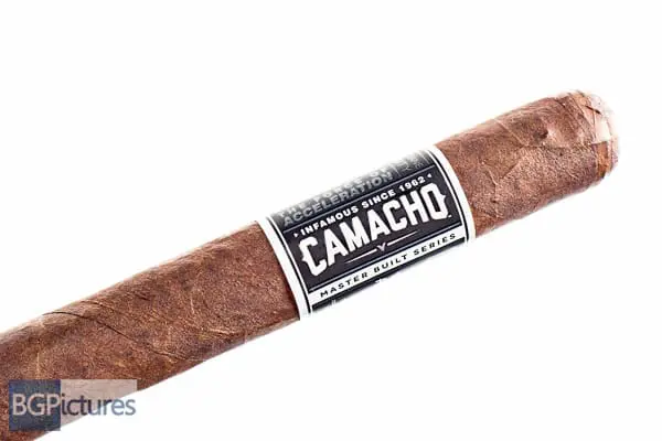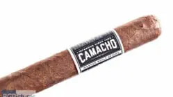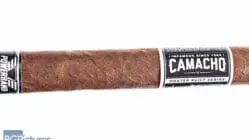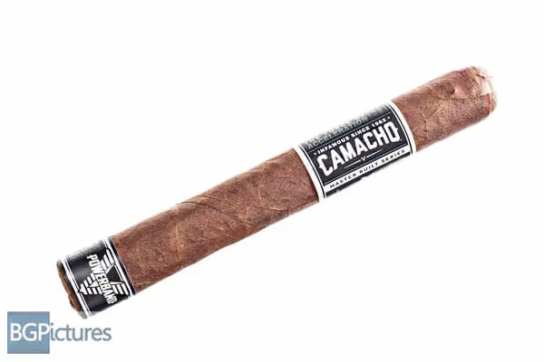 Camacho Powerband Toro Cigar Review – This 6×50 stik features a dark chocolate slightly mottled firmly packed wrapper with minimal veins, tight invisible seams, triple cap, velvet feel and a musty cocoa aroma. First light reveals a loose draw with plentiful medium bodied smoke output showing a slightly sweet zingy earth, citrus and cocoa with a pepper joining the long finish. The first third ramps up to a medium-full body adding a cream to the flavor mix and mellowing everything out to a smooth mix. The 1/2 way point comes at 35 minutes dropping the ash in a solid chunk, the burn is near perfect. Flavors are unchanged while strength is up to mild-medium. Ending at 1:05 the last third goes to a heavy sweet earth with a deeper pepper lingering on the finish and the strength peaks at a solid medium.