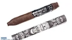 This 5.5×48 solomon shaped stick features a dark chocolate slightly mottled wrapper with a rock hard pack, dry satin feel, minimal veins, tight invisible seams and a peppery barnyard aroma. First light reveals an almost unsmokeably tight draw with minimal smoke showing a mild bodied flavor of dank earth and white pepper on a short finish. The first third opens the draw somewhat allowing mild-medium bodied flavors of a white pepper and oily slightly sweet earth to roll in. The finish is growing longer dominated by the pepper zing. The 1/2 way point comes at 25 minutes dropping the ash in 1″ chunks. The only change is the generic sweetness going to a cinnamon and allspice blend, mixing well with the earth and pepper through the finish. Ending at 50 minutes the last third just went to a ash earth and quite unpleasant aftertaste.