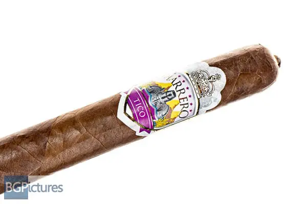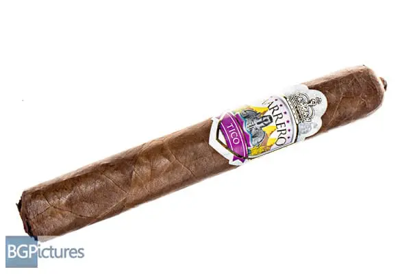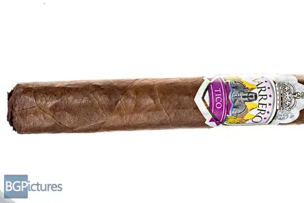 Marrero Tico Pigtail Robusto Cigar Review – This 5×52 stick features a dark brown butter soft wrapper with minimal veins, tight seams, semi-closed foot, large double pigtail cap slightly soft even pack and sweet tobacco aroma. First light reveals a good draw with mild soft smoke output showing flavors of a sweet bread quickly followed by a smooth straight tobacco through the long finish. The first third drops the bread going to a plainer sweet tobacco and wood keeping the long smooth finish. Hitting the 1/2 way point at 25 minutes the ash drops in a solid chunk with perfect performance. Body is up to a mild-medium dropping the bread and the sweetness goes to a caramel. Ending at 50 minutes to a cool nub, the last third shows no further changes.