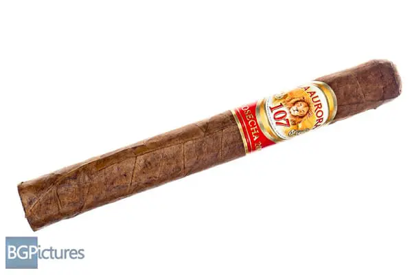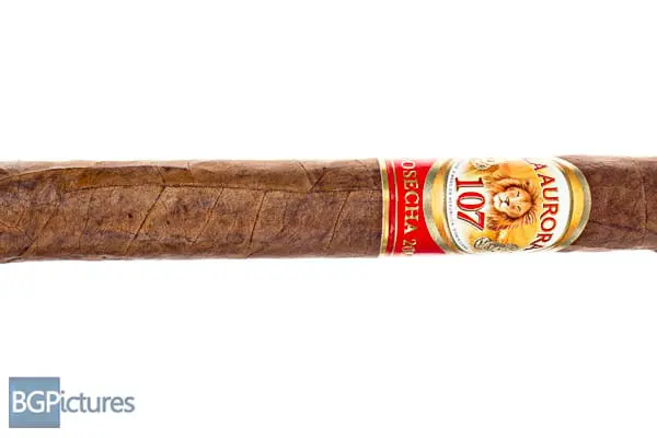 La Aurora 107 Cosecha 2006 Gorda Especial Cigar Review – This 6×47 stick features a dark brown mottled wrapper with a firm dense pack, minimal veins, tight invisible seams, oily satin feel,  large double cap and a faint sweet hay aroma.  First light reveals a perfect draw with medium bodied flavors of a slightly bitter tobacco that quickly gives way to a bold black coffee, deep earth, slight pepper and spice on a long finish. The first third comes down to mild-medium body with flavors going a little more plain and whispy, staying with a black coffee and pepper combo. The 1/2 way point comes at 35 minutes just adding a dark caramel to the draw. The finish is still very long going down in to the back of my throat. Ending at 50 minutes with a couple inches left, it needed another large touchup, went warm and squishy with no flavors changes.