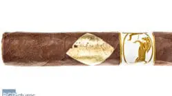 The Cavalier Genève White Series Elegantes Cigar Review – This 4.5×52 stick features a gold leaf design on the center of the dark brown wrapper which has medium veins, tight invisible seams, an oily firm but very light pack, large double pigtailed cap and faint manure aroma. First light reveals a perfect draw with plentiful but mild bodied smoke showing flavors of a sweet grassiness on the draw followed by an oily deep tobacco through the short finish. The first third burns well still putting out lots of smoke with the body coming up a notch to mild-medium. The grassiness fades replaced by a faint creamy coffee note and the finish growing longer just reaching the next draw. The 1/2 way point comes at 25 minutes dropping the ash in a solid chunk. As it burns through the gold leaf there is a slight metallic zingyness to the now medium bodied smoke with a core of a deep rich coffee and hint of sweetness, with a long finish. Ending at 50 minutes the last third showed no further changes.