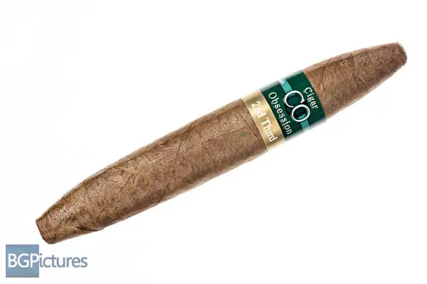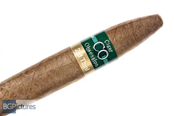CigarObsession Second Third Perfecto Cigar Review – This 6 1/8×52 stick features a dark muted brown wrapper with a slightly soft even pack, buttery oily feel, minimal veins, tight invisible seams and a rich peppery char and hay aroma.  First light reveals a slightly snug draw, normal for the start of a perfecto.  It produces mild-medium smoke with a slightly peppery deep wood note carrying through the long finish.  The first third quickly opens up the draw and produces plumes of medium-full bodied smoke adding a zing sweetness, a smoky woodiness coming from the Cameroon with a oily thick long finish. 25 minutes in at the 1/2 way point the ash drops off, flavor is still near full with the sweetness and pepper dropping off.  Ending at 40 minutes the last third brings back a touch of the sweetness going to a lighter smooth wood with a shorter warm finish.  You can order any of the CO Cigars from https://blancocigars.com/