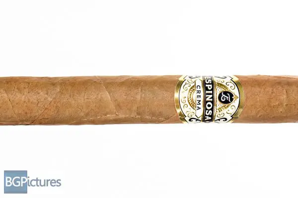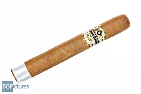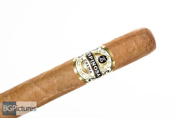 Espinosa Crema No 5 Cigar Review – This 6×56 stick features a firmly packed dark tan wrapper with a butter soft feel, minimal veins, tight invisible seams, triple cap and rich dry hay aroma. First light reveals a great draw with mild-medium bodied smoke showing sweet nuttiness on the draw that quickly goes to an oil on the lips but a dry slightly bitter nut on the finish. The first third changes just slightly holding the slightly sweet nut adding a soft coffee to the mix and dropping the bitterness on the finish. Performance is very good with easy to taste light smoke. The 1/2 way point comes at 40 minutes burning slowly, dropping the ash in a solid chunk. Flavors remain the same. Ending at 1:10 the last third comes up to a medium body and adds a sweet cream to the mix.