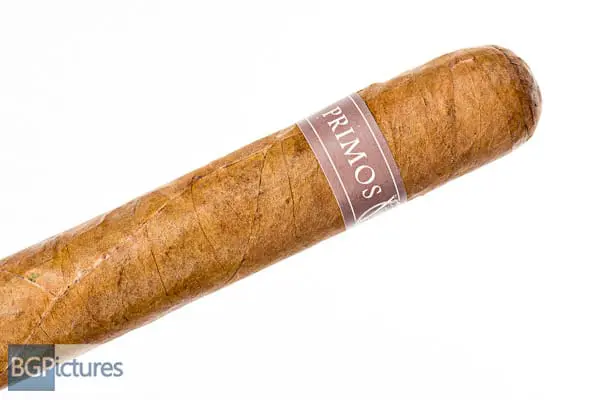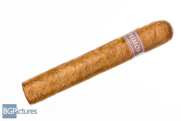 Primos Classic Natural Robusto Cigar Review – This 5×52 stick features a dark tan light but firmly packed wrapper with minimal veins, tight invisible seams, light mottling triple cap, oily paper texture and rich honey and hay aroma. First light reveals a perfect draw with mild-medium smoke showing flavors of a dry slightly sweet light earth and good pepper tingle on the short finish. The first third goes to a medium body with a perfect draw and plentiful thick smoke. Flavors change slightly going to a vanilla and light earth core with a good bit of pepper that also lasts on the now long dry finish. 20 minutes in at the 1/2 way point construction is flawless with flavors dropping the sweetness and adding a touch of spice on the draw. Ending at 35 minutes the last third showed no further changes.