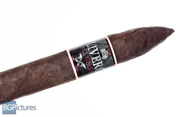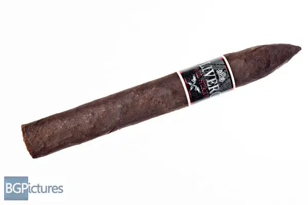 Oliveros All Stars No. 5 Chord Cigar Review – This 6.5×52 belicoso features a dark chocolate very thick and firmly packed wrapper with an oily slightly toothy feel, small veins, visible seams and damp musty cocoa aroma. First light reveals a perfect draw with plentiful medium bodied smoke output showing flavors of a sweet zingy cedar wood note with a metallic tingle on the fairly long finish. The first third grows more complex adding a touch of cream, bread and leather to the draw while the finish grows longer and the body comes up to a medium-full with thick smoke. The 1/2 way point comes at 35 minutes dropping the ash in a solid chunk, keeping the same flavors and bringing the body back to a medium. Ending at 1:10 the last third stayed the same right till the top of the band where it quickly went to a very hot washed out nuttiness.