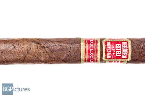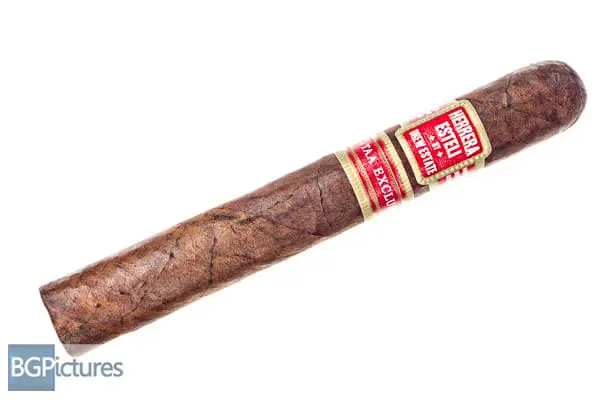 Herrera Esteli TAA Exclusiva Toro Cigar Review – This 6×52 stick features a dark chocolate mottled thick oily wrapper with minimal veins, tight invisible seams, triple cap and pungent musty sweet cocoa aroma. First light reveals a slightly snug draw with medium bodied smoke showing flavors of a slightly bitter damp earth and touch of mustiness on the short finish. The first third brings up the body to medium-full with a long oily finish carrying flavors of a bright zingy cinnamon and light earth with a smooth smoke. The 1/2 way point comes at 40 minutes with perfect construction dropping the ash in big chunks. Flavors go pretty plain with just a big damp but smooth earth and a slight pepper tingle over the top of my tongue. Ending at 1:25 the last third holds the same flavors but ramps up to a full body and touch of strength down to the cool nub with perfect construction.