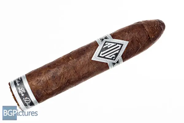 Todos Las Dias Double Wide Belicoso Cigar Review – This 4.75×60 stick features a dark chocolate mottled wrapper with a rock hard pack, minimal veins, tight invisible seams, a slightly oily satin texture and extremely pungent aroma much like fire cured tobacco. First light reveals a perfect draw with medium bodied peppery fire cured tobacco like flavors and a relatively short clean finish. The first third has a deep peppery earth core with a dried cherry and slightly sweet apricot on the draw followed by a dark roast coffee joining the finish. 1/2 way in at 25 minutes the 2nd third ramps up strength, now even with the body at medium and it really sneaks up. Flavors are largely the same dropping the sweetness of the fruit. Ending at 45 minutes flavors are the same but strength is up to full, it’s no joke.