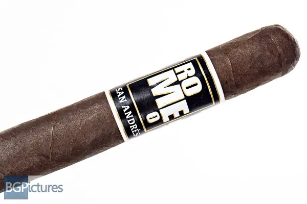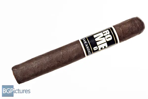 Romeo San Andrés by Romeo y Julieta Toro Cigar Review – This 6×54 stick features a very dark chocolate firmly packed wrapper with minimal veins, tight invisible seams, an oily toothy feel of fine grit sand paper, double cap and pungent camp fire like aroma. First light reveals a snug draw with minimal mild bodied smoke production showing flavors of a dry sweet hay and dark cocoa lingering on the long finish. The first third after using a draw poker opened up to normal with medium bodied smoke showing flavors of the same but much richer. The 1/2 way point comes at 30 minutes with excellent construction holding a solid ash with a razor sharp burn. Flavors are very plain with just a mild-medium slightly sweet hay. Ending at 55 minutes the last third finally wakes up adding a milk chocolate to the mic with the body at medium.