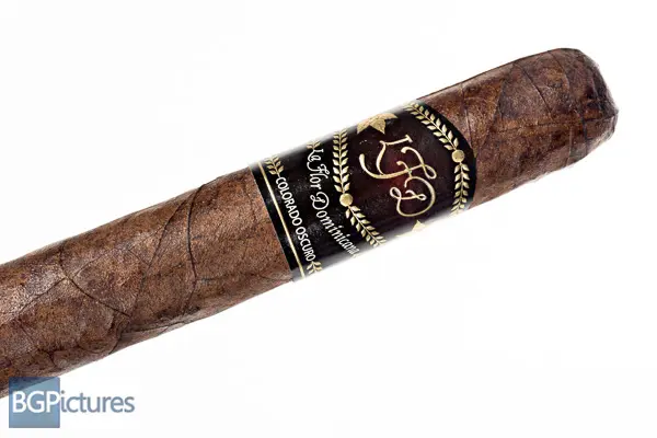 La Flor Dominicana Colorado Oscuro No 4. Cigar Review – This 5.2×54 stick features a dark chocolate red hued mottled wrapper with a slick firm oily feel, medium veins, tight invisible seams, triple cap and rich sweet cocoa aroma. First light reveals a perfect draw with medium bodied notes of a light cocoa and coffee with sweet cream quickly followed by a deep earth through the smooth finish. The first third is the same with a nice slow draw. 30 min in at the 1/2 way point the ash drops in a solid chunk, the cocoa goes away with most of the sweetness and the finish earth is lighter. Ending at 1:10 the burn slowed back down and a matching medium strength slowly crept up from the band point. Flavors remained consistent to the nub.