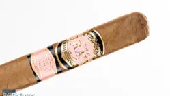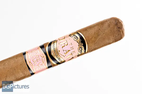 Southern Draw Rose of Sharon Robusto Cigar Review – This 5.5×54 box pressed stick features a dark tan butter soft wrapper with a slightly soft even pack, closed foot, tight invisible seams, triple cap and a floral hay aroma.  First light reveals a perfect draw with plentiful medium-full bodied smoke showing a big pepper and cayenne spice with a sweet roasted nut though the long finish.  The first third shifts to a meaty, umami note with a thick mouthfeel that makes you salivate.  The pepper and spice are still there but the overall smoke is very smooth.  35 minutes in at the 1/2 way point the only change is the pepper starting the mellow out.  Construction is flawless, dropping a solid ash chunk.  Ending at 1:10 the last third went very hot at the nub where flavors washed out but up to that point notes were unchanged.