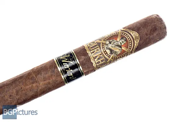 Gurkha Warlord Super Toro Cigar Review – This 6.7×60 stick features a dark chocolate super toothy oily wrapper with small veins, tight visible seams, double cap, very light but firm pack and a faint cedar aroma. First light reveals a fair draw requiring a quick double puff putting out mild, smooth oily dusty chocolate notes with a short clean finish and fast burn. The first third burns very fast, coming up to a mild-medium adding a dry woodiness and sweet apricot only on the retrohale. The finish is now lasting to the next draw. The 1/2 way point comes at 25 minutes slowing slightly with the same profile. Ash holds in small chunks at best but construction and burnline is great. Ending at 50 minutes the last third shifts again to a medium body showing notes of a straight cocoa, zingy cinnamon and hint of vanilla on a long finish of the same.