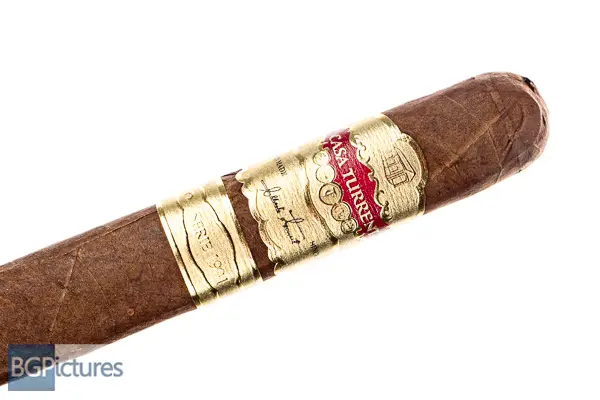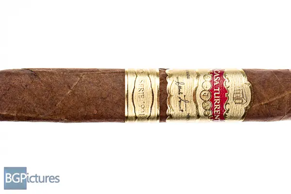 Casa Turrent Serie 1901 Robusto Box Pressed Cigar Review – This 5.2×50 stick features a dark brown golden hued, dry, lightly packed slightly toothy wrapper with minimal veins, tight invisible seams, triple cap and slight cocoa aroma. First light reveals a perfect draw with thick medium bodied smoke showing a deep earthy leather with a pepper taste on the finish but no heat or zing. The first third quickly comes up to a medium-full body with effortless smoke production showing notes of a creamy sweet nutty coffee and leather with the touch of soft pepper all on the finish to the next draw. The 1/2 way point comes at a quick 20 minutes dropping a solid ash chunk with no changes. Ending at 45 minutes the last third drops the heavy notes going to a bright nutty mint.