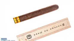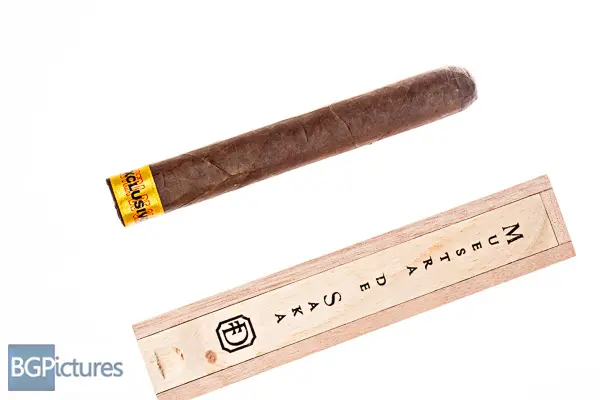 Muestra de Saka Exclusivo Cigar Review – This 6×52 stick features a dark brown densely packed thin wrapper with small veins, slightly loose seams, triple cap, oily soft feel and pungent hay aroma. First light reveals a perfect draw with medium bodied notes of a very creamy smooth sweet vanilla, earth and pepper without any bite, followed by a slight cayenne on the finish. The first third comes up to a medium-full body adding a nutmeg and graham cracker to the draw and getting even smoother with a rich but silky smoke quality. The finish grows a bit longer now lasting just to the next draw. The 1/2 way point hits at 50 minutes holding the ash in a solid chunk. Flavors remain almost the same with just the vanilla swapping out for a dried cherry note and a touch of strength rolling in. Ending at 1:35 the last third dropped the fruitiness shifting to a smooth nuttiness and light earth with the same on the finish, dropping the pepper and spice. Strength tops out at medium.