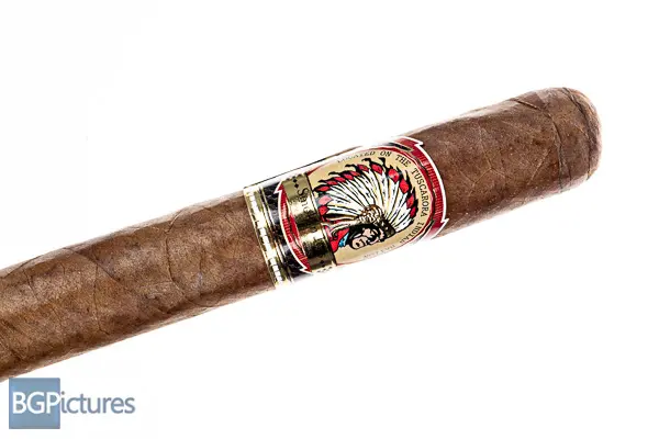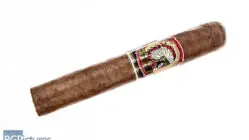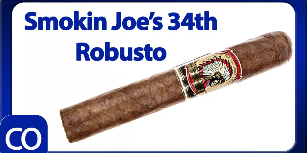 Smokin Joe’s 34th Anniversary Robusto Cigar Review – This 5×50 stick features a dark chocolate mottled wrapper with a dense slightly firm even pack, oily butter soft feel, minimal veins, tight invisible seams, triple cap and a rich sweet tobacco aroma. First light reveals a medium-full body of sweet cream, leather, wood and pepper on a long finish of the same. The first third comes down to a medium body with a perfect draw, dialing down the pepper and melting the flavors together with the woodiness staying through the finish. The 1/2 way point comes at 35 minutes swapping the wood for a soft creamy coffee, keeping the rest the same. Ending at 1:10 the last third brought up the body to medium-full along with the coffee and added a touch of strength.