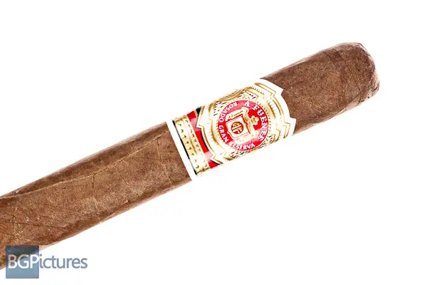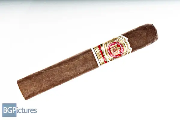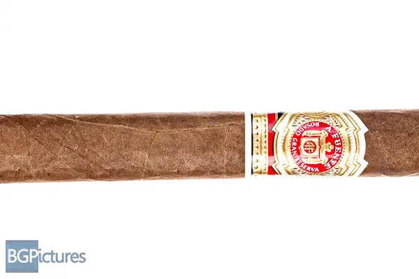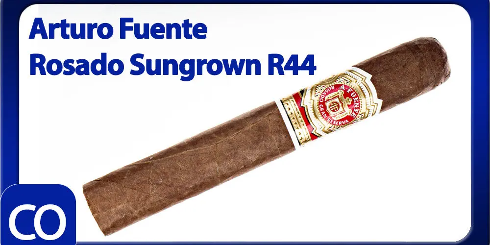 Arturo Fuente Rosado Sungrown Magnum R44 Cigar Review – This 4 7/8×47 stick features a box pressed firmly packed slightly oily satin wrapper with a dark brown hue, minimal veins, tight invisible seams, triple cap and pungent dry hay aroma. First light reveals a perfect draw with rich medium-full bodied smoke showing a gritty textured dry roasted nut with a touch of salt and light earth on a long tingly finish. The first third burns perfectly moving flavors to a predominate dry nuttiness with a touch of sweetness and a light coffee just on the draw, followed by a growing black pepper and the same texture through the long finish. The 1/2 way point comes at 30 minutes dropping most of the roasted nut shifting to a slight coffee and big earthiness that lingers on the finish with the dab of pepper. Construction is flawless. Ending at 50 minutes to the hot nub, flavors change yet again to a light earth and big vanilla cream on the draw with a growing pepper joining in the long finish. No strength and near full body all the way down.