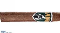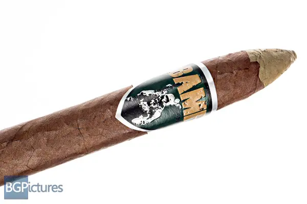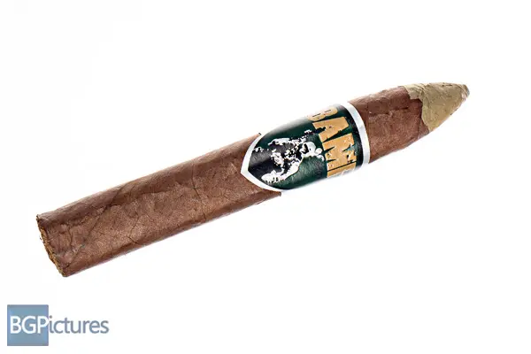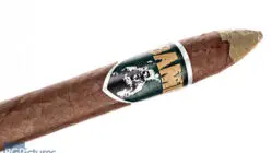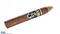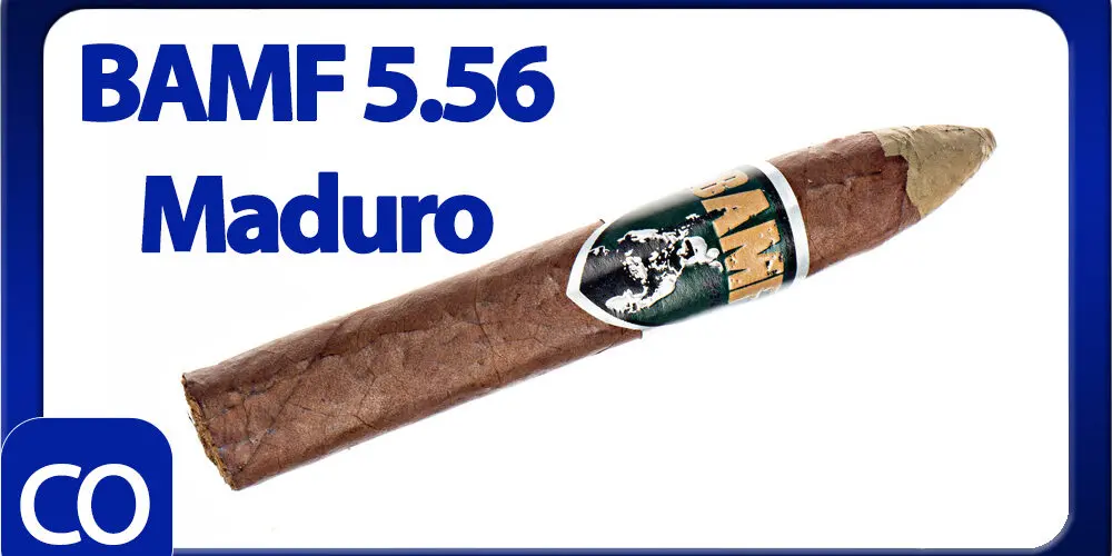BAMF 5.56 Green Tip Cigar Review – This 5×56 torpedo stick features a dark chocolate soft but evenly packed wrapper with a slightly lumpy texture and roll. It has minimal veins, tight invisible seams, a slight pepper and hay aroma and a unique candella tip for appearance. First light reveals a good draw with light smoke output but nearly full bodied flavors of a dry dusty dark cocoa and dark coffee with pepper coming through the long finish. The first third burns very quickly but evenly, bringing the body down to a medium with the core flavors unchanged but quite a bit smoother. The 1/2 way point hits at just 25 minutes, adding a soft caramel to the finish, keeping everything else the same. Ending at 45 minutes the last third showed no changes.