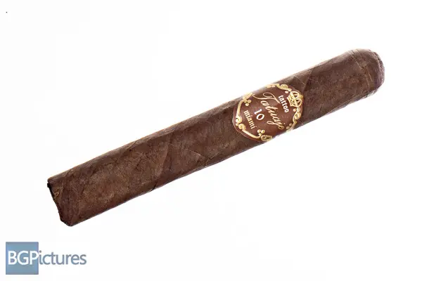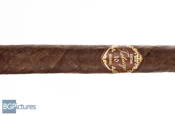 Tatuaje Tattoo 10 Miami Bon Chasseur Cigar Review – This 5 3/8×52 stick features a dark cocoa firmly packed toothy and oily wrapper with minimal veins, tight invisible seams, closed foot, triple cap and rich cocoa and oak aroma. First light reveals a very good draw with thick, rich medium-full bodied notes of a slightly sweet nut and bread, light earth and a building black pepper on the long finish. The first third completely changes to a naturally sweet fruit, almost a cherry note, with a creamy coffee and the pepper mellowing through the finish. The 1/2 way point comes at a very slow 45 minutes, combining all previous flavors in to one. The sweet fruit, coffee, cocoa, light earth, all thick and smooth with the light pepper on the tail end. Ending at 1:25 the last third shifts to a big strength kick and flavors of a bright warm leather.