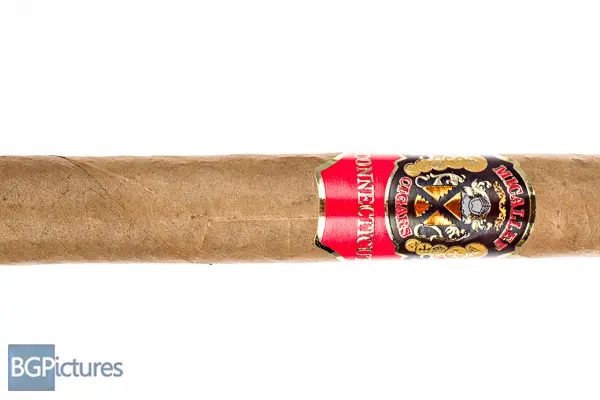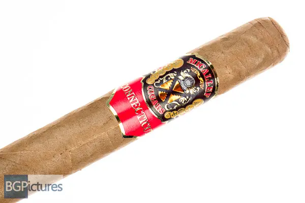 Micallef Connecticut Toro Cigar Review – This 6×52 stick features a dark tan, dry, soft textured, firmly packed wrapper with minimal veins, tight invisible seams, triple cap and very pungent sweet hay aroma. First light reveals a perfect draw with plentiful medium-full bodied smoke of a bright sweet wood with quite a metallic texture and slight pepper & spice through the short finish. The first third drops the little sweet in favor of a pepper to go with the woodiness of the draw while the finish grows longer. Body is down to a medium and the texture a bit smoother. The 1/2 way point comes at 35 minutes back up to a medium-full body with the pepper and spice coming way up even through the draw, with a yeasty bread coming and going. Ending at 1:20 the last third is back to medium body with just a slight strength kick. Flavors are a heavier wood and light earth with the pepper and spice gone.