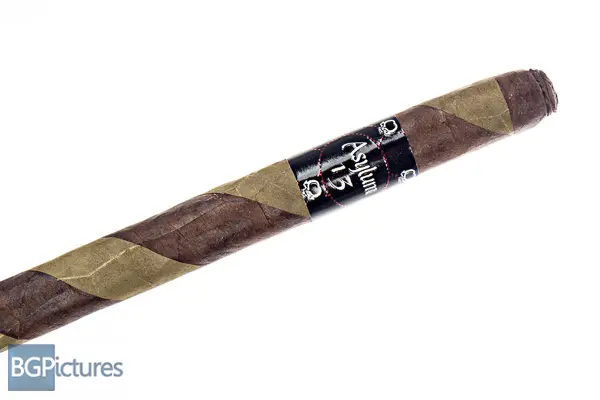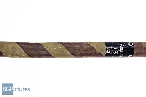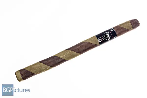 Asylum 13 The Ogre Lancero Cigar Review – This 7×38 barberpole stick features a dual wrapper maduro and candella stripe with a firm pack, very slick oily texture, minimal veins, intricate cap and rich sweet cocoa and hay aroma. First light reveals a snug draw with alternating good then light smoke production showing medium-full bodied notes of a deep heavy oak and campfire. The first third opens the draw after extensive work with a PerfecDraw and pliers, with notes going to a deep sweet earth and cocoa, spicy zing finish and hot retrohale. The 1/2 way point comes at 35 minutes with flavors shifting to a much bigger and smooth dark cocoa dropping the deep earth and most of the spice, leaving a very warm long finish. Ending at 45 minutes the last third burns faster with the smoke growing hotter and flavors adding a touch of black coffee. This video is sponsored by https://SmokeInn.com