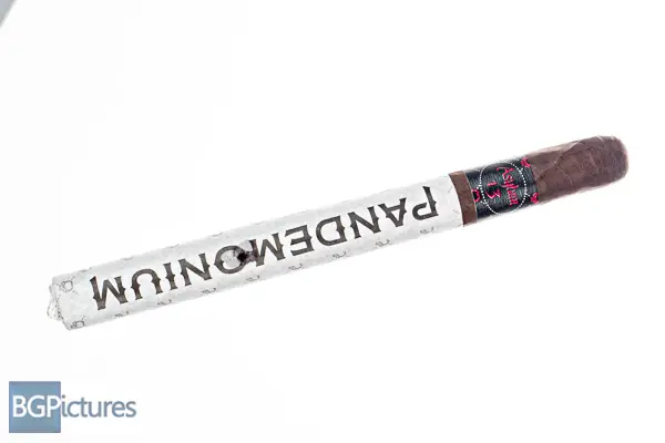 Asylum Pandemonium Cigar Review – This monster 8.5×52 stick features a dark cocoa firmly packed wrapper with medium veins, tight invisible seams, an oily smooth feel and very faint damp cocoa aroma with a triple cap. First light reveals a good draw but requires a double puff for smoke. Notes are a mild-medium very deep earth and black pepper tingle on a long finish. The first third burns well, still requiring multiple puffs. Flavors just add a slight natural sweetness to the mix and body is up to medium. 30 minutes in the ash drops a couple inches and flavors add just a hint of chocolate to the mix. Burn is even but problematic to produce good smoke. An hour in at the start of the 2nd third, flavors change again slightly adding a touch of coffee, turning down the pepper and it gets a wee bit smoother. 2 hours in just past the 1/2 way point, flavors are at a medium-full with a shift to a straight deep heavy earth and black coffee on the long full finish. 3 hours in to the hot nub, flavors change again to a straight black coffee and touch of cocoa with a medium strength for the last 30 minutes.