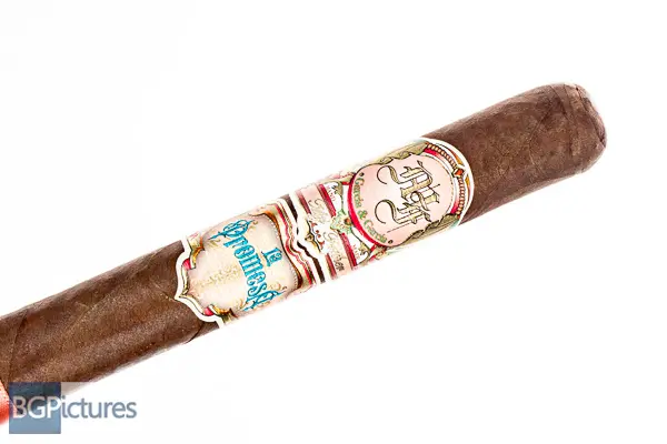 My Father La Promesa Toro Cigaar Review – This 6×52 stick features a dark brown, oily slick wrapper with a firm even pack, minimal veins, tight invisible seams, triple cap and sweet cocoa aroma. First light reveals a terrible draw from a huge stem that needed to be pulled out. Flavors are medium bodied creamy sweet cocoa with touch of coffee on the finish. The first third, after fixing, goes to medium-full with an even smoother, sweeter cocoa on the draw, with a short smooth finish of the same coffee. The 1/2 way point comes at a slower 35 minutes with flavors remaining the same. Burn and draw are perfect. Ending at 1 hour the last third was consistent all the way down with great burn.