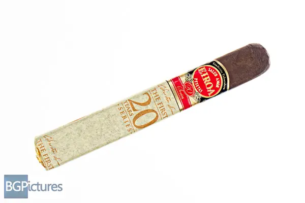 Eiroa the First 20 Years 654 Cigar Review – This box pressed 6×54 stick features a dark cocoa wrapper with a very oily satin feel, minimal veins, tight invisible seams, slightly soft pack and a sweep peppery tobacco aroma. First light reveals a flawless draw with medium-full bodied flavors of a sweet chocolate, musty aged tobacco, tiny bit of coffee and a slight pepper through the short clean finish. The first third drops to a medium body needing a double puff for decent smoke. The flavors are just a neutral earth as the smoke is very hot and the cigar going squishy back to the band. 35 minutes in at the 1/2 way point, flavors shift back to the start but the burn is still tunneling with the wrapper just not keeping up, needing a touchup. Ending at 45 minutes it needed yet another touchup and the flavors completely washed out.