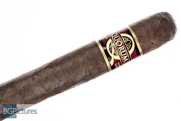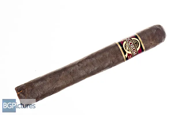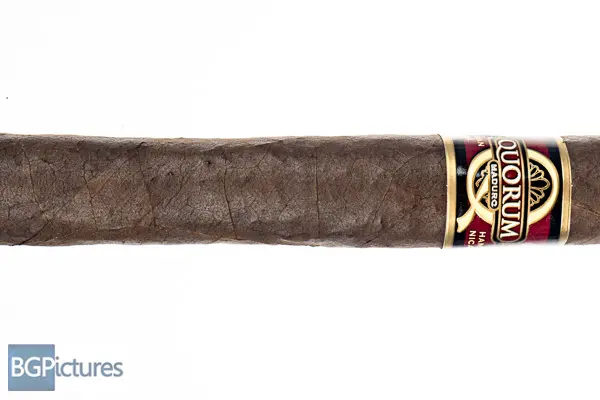 Quorum Maduro Toro Cigar Review – This 6×50 budget stick features a dark chocolate firmly packed rustic wrapper with medium veins, tight invisible seams, a slightly oily satin feel, large double cap and pungent chocolate and hay aroma. First light reveals a good draw with light, whispy mild bodied smoke showing notes of a faint earth and light coffee with a short finish. The first third burns well with better smoke output and a slight body bump up to mild-medium with a much longer finish. Flavor is coffee cake all the way through. 30 minutes in half way, body is a medium with flavors of a deeper earth and coffee both on the draw and finish. Construction is very good holding a solid ash. Ending at 50 minutes where it got hot, the last third showed no changes.
