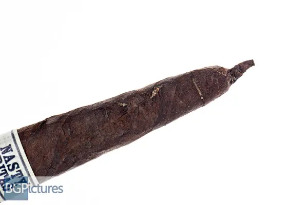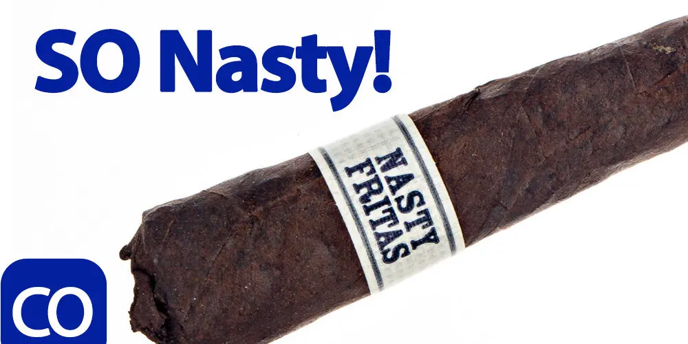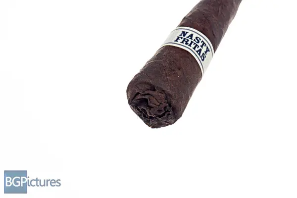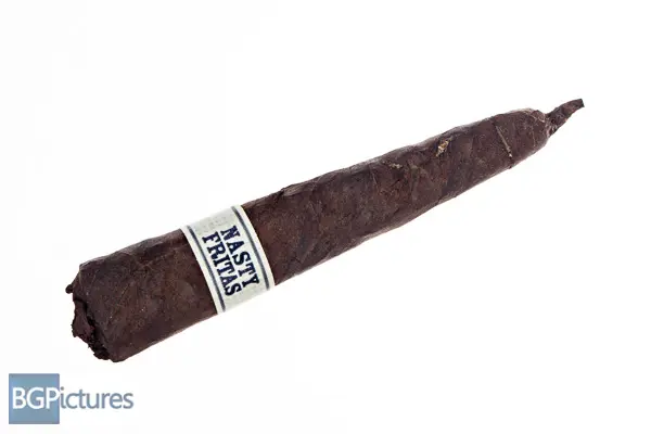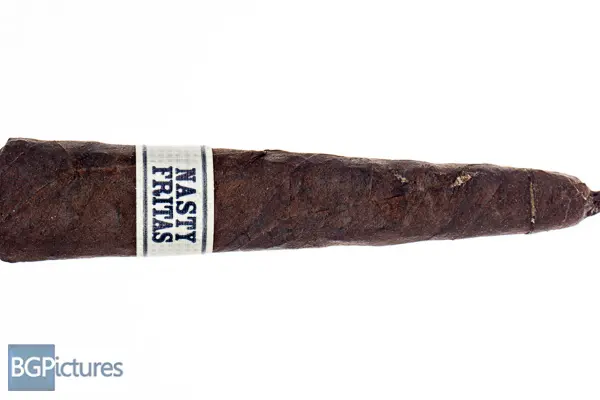 Liga Privada Nasty Fritas Cigar Review – This 4.5×44 cone shaped cigar features a dark chocolate almost black wrapper with a firm even pack, minimal veins, tight invisible seams, closed foot and rich sweet hay and earth aroma. First light reveals a perfect draw with thick rich medium bodied smoke of a smooth earth and a pepper tingle that comes on the tail of the long finish. The first half ends at 30 minutes burning very well and slowly with notes going to a medium-full of heavy but smooth earth and cocoa on the draw, the same pepper tingle on the finish and a unique woodsy foot smoke aroma. Ending at a surprisingly slow 55 minutes, the back bit burned faster as it got smaller, dropping the cocoa and coming down to a medium body with just a hint of strength.