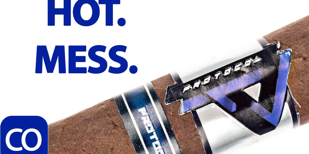 Protocol Blue Oscuro Toro Cigar Review – This 6×52 stick features a dark brown sandy textured wrapper with small veins, tight invisible seams, firm light pack, double cap and rich sweet cocoa aroma. First light reveals a perfect draw with rich medium bodied smoke showing a sweet vegetal note and a very creamy smooth texture. The first third quickly adds a creamy coffee note but then gets rock hard and crispy at the burnline, needing a recut and relight before flavors returned, an inch shorter. The 1/2 way point comes at 20 minutes with notes the same. Ending shortly after, it needed yet another big cut down after going out again, and repeated just below the band after tasting like ashtray. Done.