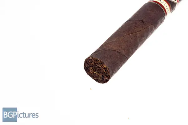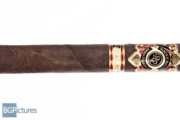 Rocky Patel Renaissance Maduro Churchill Cigar Review – This 7×48 stick features a dark chocolate oily wrapper with a light tooth, soft even pack, minimal veins, tight invisible seams, large double cap and must cocoa aroma. First light reveals a perfect draw with rich plentiful medium-full bodied smoke showing flavors of a deep zesty earth, slightly sweet raisin and spicy pepper through the long finish. The first third carries most of the same experience but adding a milk chocolate to the draw and killing most of the pepper and spice on the finish. The 1/2 way point comes at a slow 45 minutes with notes staying the same but a bit of strength creeping in. Burn is sharp but needed periodic relights. Ending at 1:20 the last third needed the same relights, pushed up the strength, dropped more of the pepper and spice, adding a warm leather to the mix.
