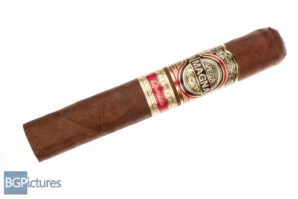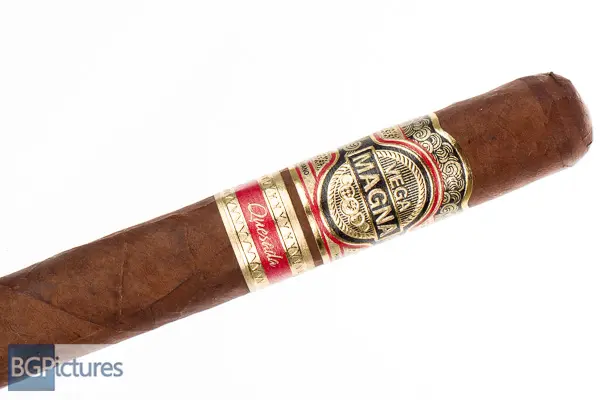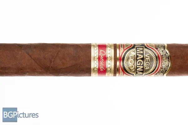 Quesada Vega Magna Toro Cigar Review – This 6×50 stick features a dark chocolate wrapper with a firm pack, minimal veins, tight invisible seams, triple cap, oily satin feel and musty latakia aroma. First light reveals a perfect open draw with plumes of mild-medium smoke showing notes of a zingy light nuttiness and leather with a short clean finish. The first third burns perfectly and slowly with the body up to a solid medium and a pronounced peat joining the body notes and hanging on the now longer finish to the next draw. The 1/2 way point comes at a slow 50 minutes with perfect construction, holding the same flavors but slightly edging up in body and a hint of strength coming in. Ending at 1:25 the last third mellowed a bit to a medium body dropping the peat, going to a smooth citrus and nut zing lasting through the long finish. This video is sponsored by SmokeInn.com