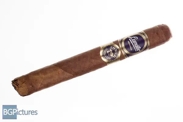 JFR Lunatic Torch Visionaries Cigar Review – This 6.5×52 stick features a dark cocoa wrapper with a shaggy foot, firm even pack, oily toothy feel, minimal veins, tight invisible seams, triple cap and a raisin and dark cocoa aroma. First light reveals a perfect draw with thick full bodied notes of deep earth and cocoa. The first third grows in complexity as soon as the wrapper joins in with a bold earth, pepper and slightly sweet plum mix all on a long finish. The 1/2 way point comes at 40 minutes coming down to medium-full and adding a leather to the mix. The last third ended at 1:15 with a hot squishy nub with no further changes.