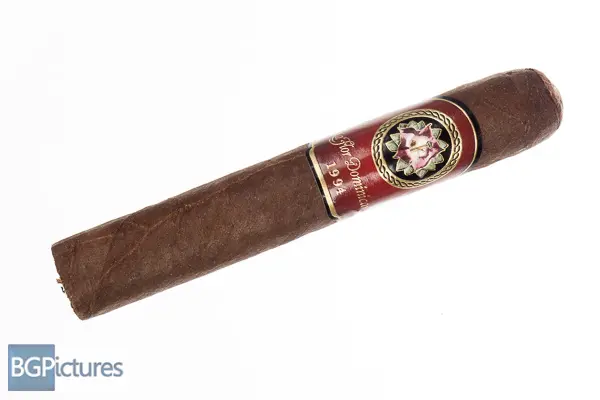 La Flor Dominicana 1994 Conga Cigar Review – This 5×52 stick features a thick very toothy and oily firmly packed wrapper with minimal veins, tight invisible seams, double cap and rich cocoa and hay aroma. First light reveals a perfect draw with plentiful full bodied smoke showing notes of a deep in your face metallic earth with a big pepper and jalapeno spice finish. The first third mellows to a smoother medium-full body adding a sweetness to the earth and toning down the pepper and spice through the finish adding a subtle coffee. 30 minutes in at the half way point it’s smoother dropping nearly all the pepper and spice, with the coffee matching the earth on the draw. Ending at 1 hour the last third continued to mellow dropping all the texture and down to a medium body with a hint of strength.