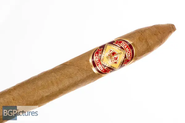 Diamond Crown Pyramid #7 Cigar Review – This 6.75×54 stick features a dark tan wrapper with a dense firm pack, oily paper bag like feel, minimal veins, tight invisible seams and a pungent sweet peppery cedar aroma. First light reveals much the same in the flavor department, with the pepper lingering through the long finish but with no heat or texture just flavor. Draw is perfect and body is near full. The first third shifts to medium-full sweet cream and leather with a zingy pepper kick, all lasting through the long finish to the next draw with perfect burn. The 1/2 way point comes at 45 minutes with notes remaining just as complex but consistent, dropping a solid single ash chunk with flawless construction. Ending at 1:20 the last third continued the same flawless performance to the cool nub.