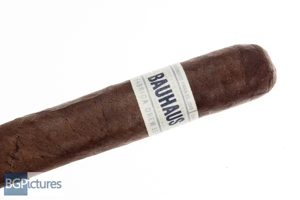 Liga Privada Bauhaus Cigar Review – This 4.5×50 stick features a dark chocolate slightly red hued finely toothed oily wrapper with minimal veins, tight invisible seams, large double capo and musty rich cocoa aroma. First light reveals a perfect draw with copious amounts of thick rich chewy smoke showing medium-full bodied flavors of a dark cocoa, light earth and slightly sweet nut all lasting through the fairly long finish. The first third shifts down to a medium body and long finish both with a straight up semi-sweet rich chocolate, almost at infused levels. The 1/2 way point comes at 40 minutes going back to medium-full adding a creamy coffee note to the end of the draw and through the finish. Ending at 1:20 the last third remained the same.