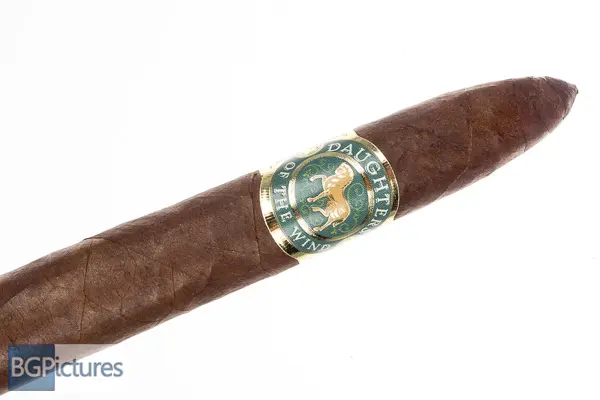 Daughters of the Wind Sabino Cigar Review – This 6.2×60 perfecto stick features a dark chocolate mottled wrapper with a firm even pack, small veins, tight invisible seams, double tapered ends, a soft buttery feel and a dry leafy cocoa aroma. First light reveals a completely plugged foot that needed to be cut off. Once done however the draw was perfect, plumes of thick zingy medium bodied dry wood and cinnamon was on the draw and long building finish. The first third mellows a touch taking out some of the heat with a perfect slow burn. The 1/2 way point hits at 35 minutes with flavors finally waking up. Medium-full body with a long oily finish it shows a coffee, sweet cocoa, cinnamon and building spice to the next draw. The last third ends at 1:05 with notes remaining the same to the hot nub.