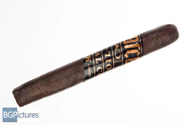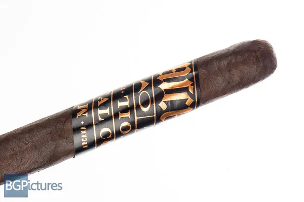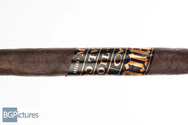 CAO Arcana Mortal Coil Toro Cigar Review – This 6.1×50 stick features a rich dark cocoa firmly packed oily wrapper with minimal veins, tight invisible seams, double cap and pungent raisin and chocolate aroma. First light reveals a perfect draw with plentiful full bodied smoke of a slight chocolate and big deep earth quickly followed by a touch of pepper and big building cayenne heat and oil over the lips and tongue. The first third comes down a tick to medium-full adding complexity with a sweet cocoa, deep earth and apricot on the draw while the finish brings the pepper up slightly and spice down. The 1/2 way point comes at a slow 40 minutes with notes dropping the apricot replacing it with a dark roast coffee that stick around on the finish. Body is down to medium and construction is flawless with a solid ash. Ending at 1:30 the last third remains medium bodied dropping the sweetness and cocoa sticking with a dark coffee and earth through the finish. A good bit of strength joins in at the nub.
