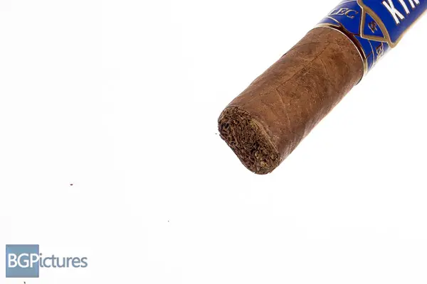 Alec & Bradley Kintsugi Robusto Cigar Review – This 5×50 stick features a slightly red hued dark brown wrapper with a soft even pack, dry slightly toothy feel, minimal veins, tight invisible seams, triple cap and rich hay and cocoa aroma. First light reveals a good draw with medium bodied gritty smoke showing a building slightly sweet leather and spice through the long finish. The first third burns well but very quickly and with short ash drops. Flavors are down to mild-medium dropping the sweetness and spice with just a bit of leather left and a generic dry wood taking over with a shorter finish. Ending at 40 minutes the rest is largely the same with a fleeting rootbeer on the draw near the end.