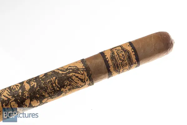 Altar Q by Oscar Valladares Cigar Review – This 6×52 stick features a dark brown firmly packed buttery soft wrapper with minimal veins, tight invisible seams, triple pigtailed cap and pungent coca and manure aroma. First light reveals a perfect draw with gritty medium bodied smoke showing notes of a deep peppery cedar with a long finish. The first third burns well and fairly slow, pouring out smoke with the same flavors. The 1/2 way point comes at a slow 45 minutes with perfect construction. Flavors shift slightly to a deep oakiness and dark caramel followed by the same lingering pepper with no bite. Ending at 1:25 the last third remained consistent.