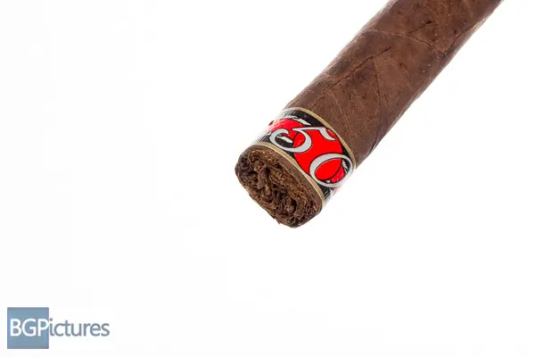 Rocky Patel Fifty Cigar Review – This 6.5×52 stick features a very softly box pressed, firmly packed oily satin wrapper with a dark brown color, large triple cap and rich cocoa and hay aroma. First light reveals a perfect draw with medium-full bodied smoke showing a dark cocoa, deep smooth earth with an oily peppery finish keeping a smooth easy retro. The first third adds a subtle liquid smoke like flavor to the mix, with everything mellowing to a medium body. The 1/2 way point comes at 30 minutes burning well, while notes remain the same, quite complex and smooth, the body ticks back up pushing medium-full with great smoke production and a perfect burn. Ending at 1:10 the last third burned a bit slower with flavors unchanged to the hot nub. This video is sponsored by SmokeInn.com