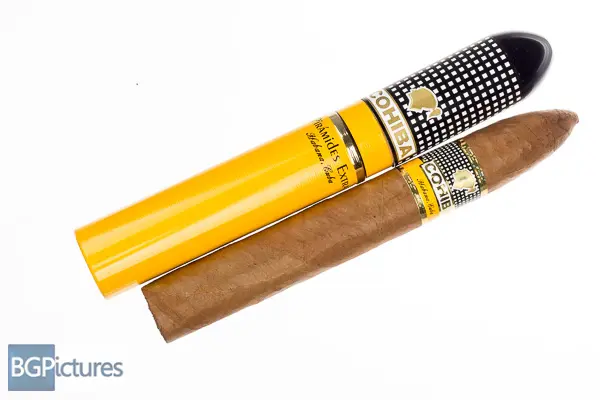 Cohiba Piramides Extra Cigar Review – Cuban – This 6.3×54 stick features a torpedo roll with a dark tan wrapper with a soft but even pack, soft buttery feel, small veins, tight invisible seams and a sweet hay and vegetal aroma. First light reveals a great draw with plentiful medium bodied smoke showing aged tobacco smoothness, a creamy sweet vanilla note and building pepper flavor and zing through the long finish. The first third comes down to mild-medium with a wavy burn line but still perfect draw. Flavors are still smooth and complex with a yeasty bread note added throughout. The 1/2 way point comes at 30 minutes with no changes and a solid ash drop. Ending at 1:05 the last third adds to the complexity with a zingy leather with a cinnamon like texture, keeping the rest of the flavors. This video is sponsored by Online-Cigars.com use code OBSESS for five pounds off your first order.