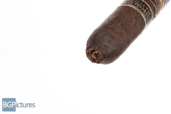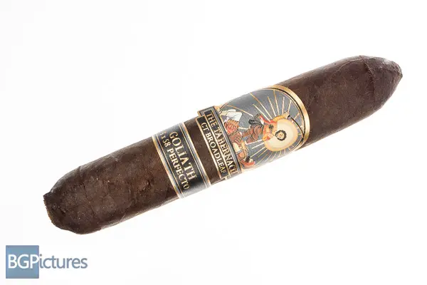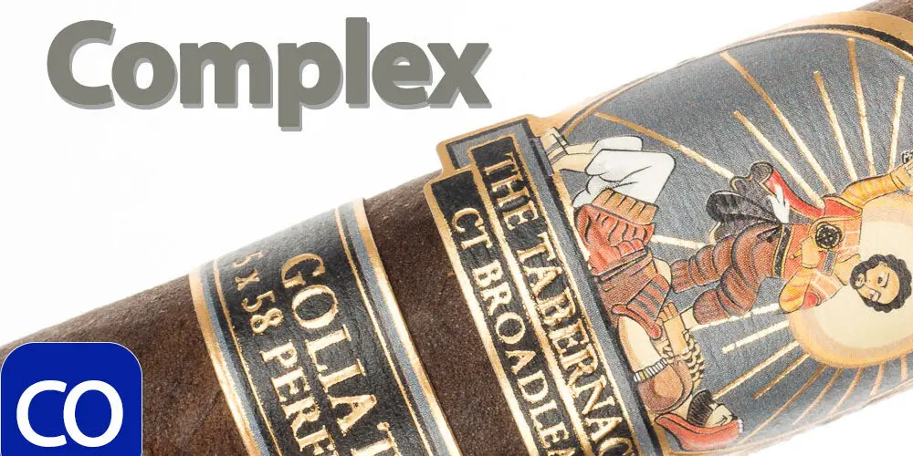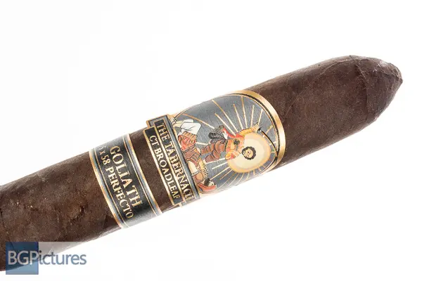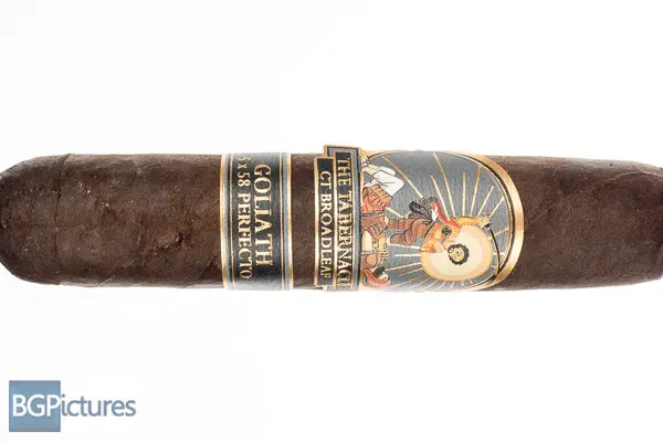 Foundation Tabernacle Goliath Cigar Review – This 5×58 perfecto stick features an almost black, thick, oily slightly toothy wrapper with a faint sweet soapy hay aroma. First light reveals a perfect draw with a medium body showing flavors of a buttery soft texture, glycerin sweetness with a floral kick and building pepper and spice through the long finish. The first third very quickly ramps to medium-full as the perfecto tip burns off, showing notes of a strong creamy leather, dark roast coffee and lingering sweetness with just a hint of pepper and spice left on the tail of the finish. The 1/2 way point comes at 40 minutes with flavors shifting a bit. The pepper is up in flavor but not texture, also creeping in to the draw notes. The leather is still there but going to a deep earth direction, keeping the rest of the complexity. Ending at 1:15 the last third keeps all the complexity adding a good strength kick almost matching the medium-full body. This video is sponsored by CigareAndPipes.com